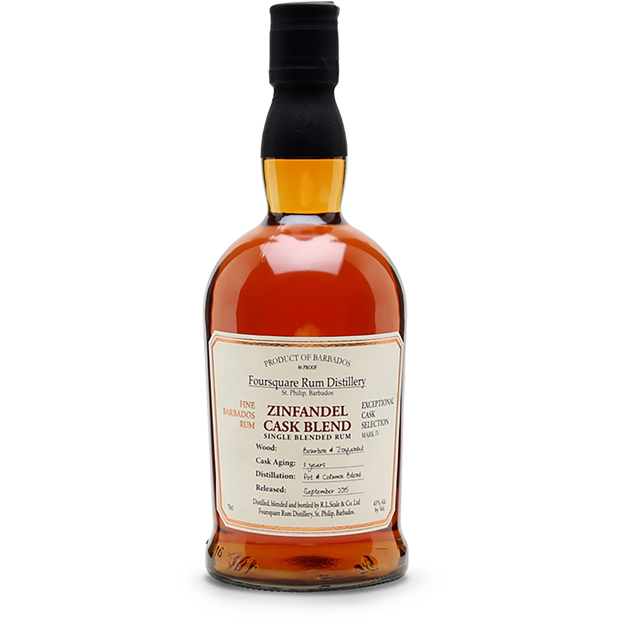 Il Foursquare Exceptional Cask Selection IV Zinfandel Cask Blend rappresenta una delle sperimentazioni più riuscite di Richard Seale con affinamenti in botti da vino. Questo rum barbadiano nasce dall'assemblaggio di due componenti: un rum invecchiato 5 anni in botti ex-bourbon seguito da 6 anni in botti ex-Zinfandel, e un rum di 11 anni maturato interamente in botti ex-bourbon. Il risultato è un blend di 11 anni imbottigliato nel settembre 2015 a 43%, che porta con sé la fruttosità distintiva dello Zinfandel californiano integrata con la classica eleganza dei rum Foursquare. Come tutti i rum della Exceptional Cask Selection, nasce dal blend di distillati provenienti da alambicchi pot still e a colonna singola che operano sotto vuoto, garantendo una complessità aromatica superiore. Senza aggiunta di zuccheri o coloranti, questo rum testimonia la capacità di Richard Seale di creare ponti inaspettati tra la tradizione rummistica caraibica e la cultura vinicola californiana.